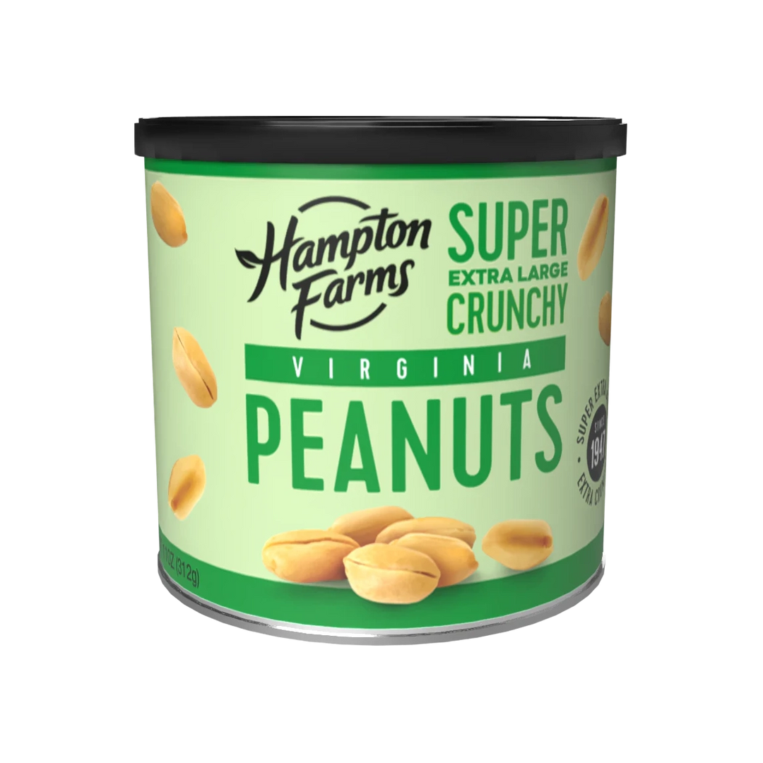 Hampton Farms Super Extra Large Peanuts are roasted to deliver bold flavor and an unbeatable crunch in every bite. Made with premium-grade, 100% U.S.-grown Virginia peanuts, each batch is carefully crafted through our specialized roasting process to bring out the rich, roasted taste and signature texture that set them apart. Bigger in size and bigger in flavor, these flagship peanuts are made for sharing, snacking, and savoring—because when it comes to quality and crunch, there’s simply no substitute for Hampton Farms.